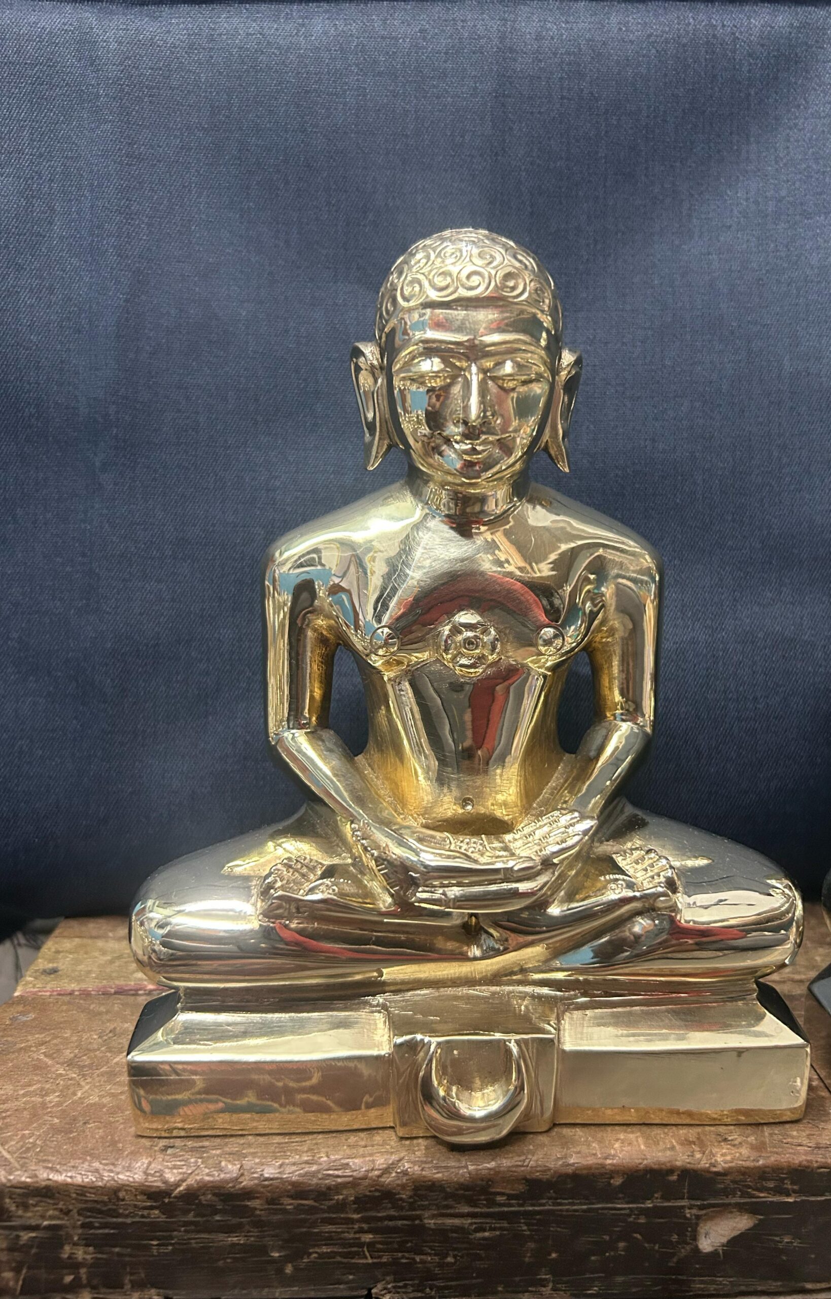 A Handcrafted Bronze Moorti with an antique finish, showcasing the spiritual aura of Jain Tirthankaras. The intricate carving, aged patina, and timeless craftsmanship make it a great addition to temples and collectors’ displays.